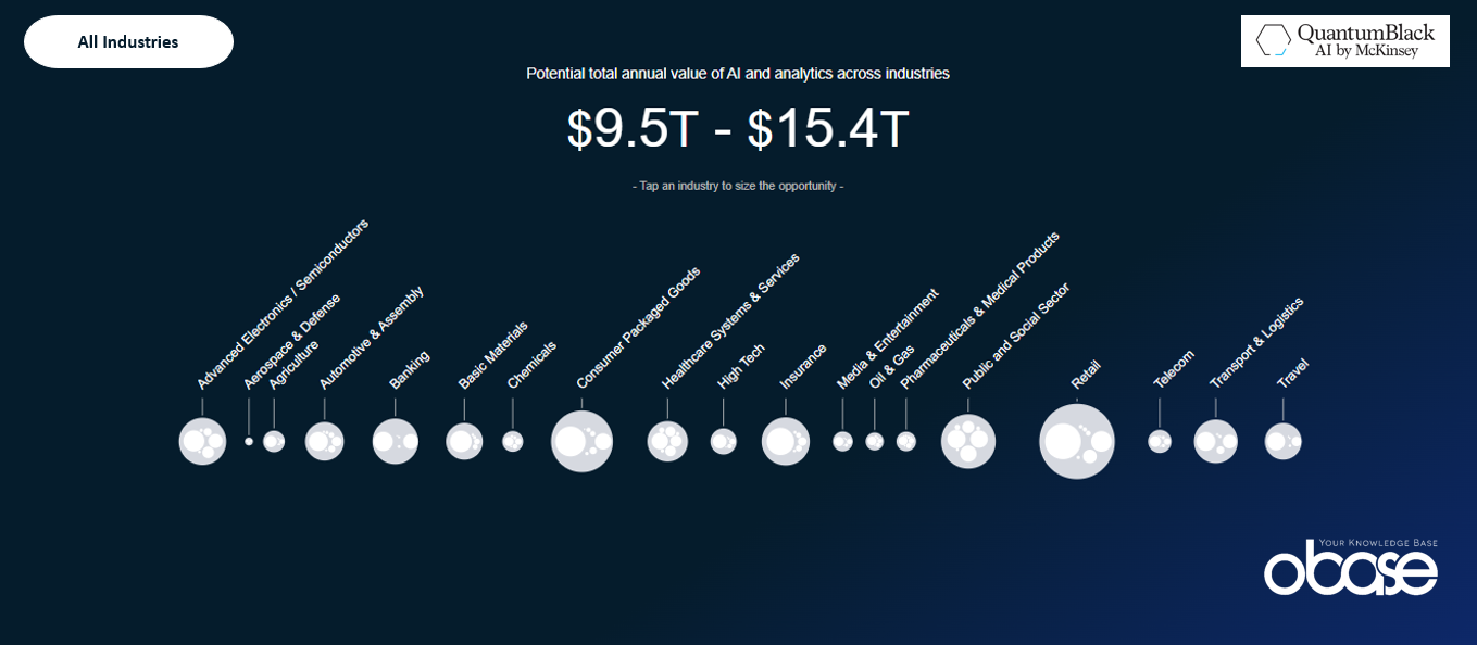 In a study conducted by McKinsey in 2025 to measure the added value that could be created by new artificial intelligence technologies and data analytics on a sectoral basis, it was determined that the total annual value potential of artificial intelligence and analytics was between 9.5 and 15.4 trillion dollars in total across all sectors.
