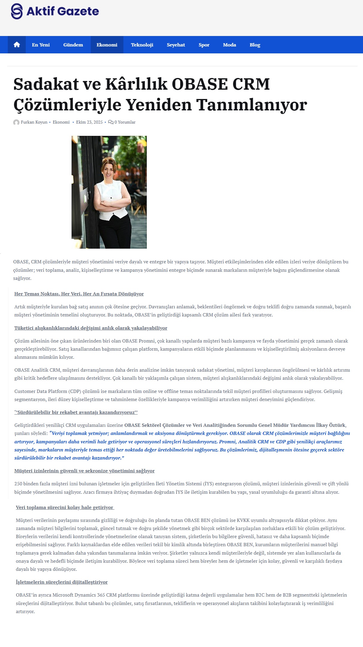 Sadakat ve Kârlılık OBASE CRM Çözümleriyle Yeniden Tanımlanıyor
