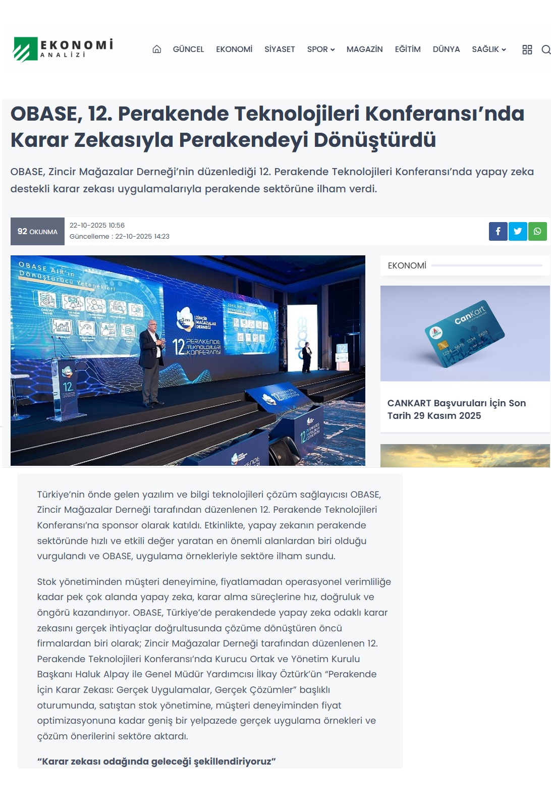 OBASE, 12. Perakende Teknolojileri Konferansı’nda Karar Zekasıyla Perakendeyi Dönüştürdü