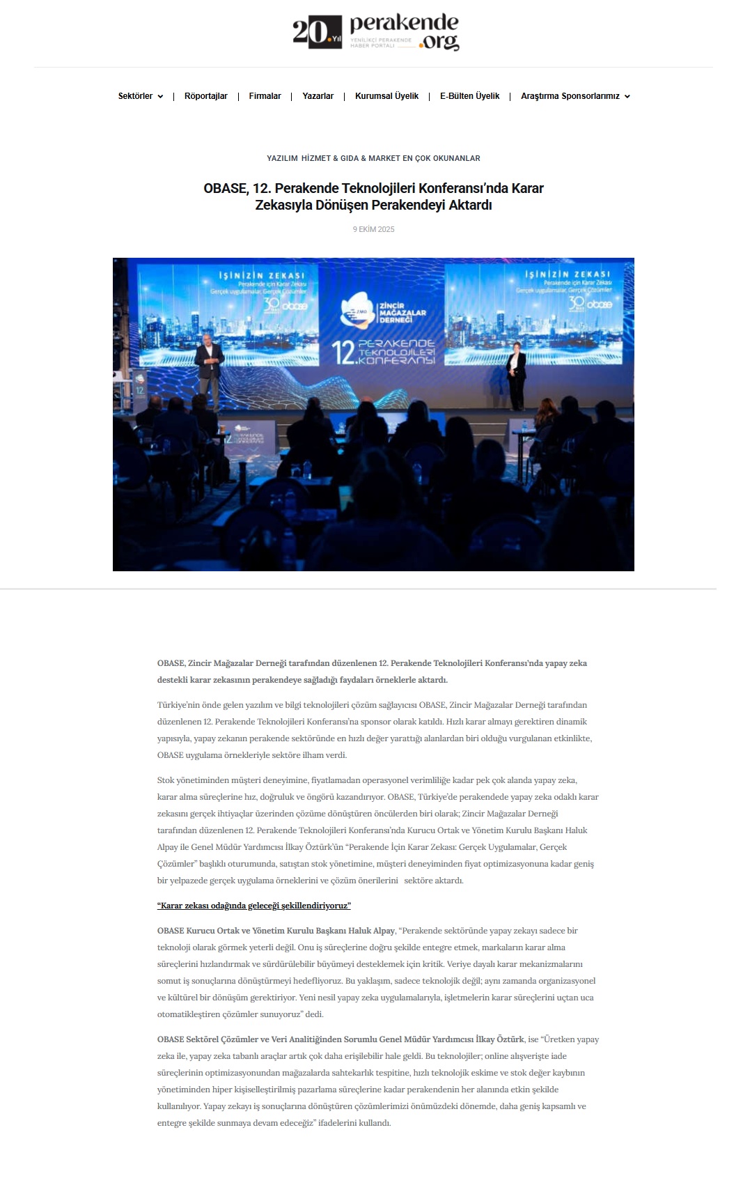 OBASE, 12. Perakende Teknolojileri Konferansı’nda Karar Zekasıyla Dönüşen Perakendeyi Aktardı